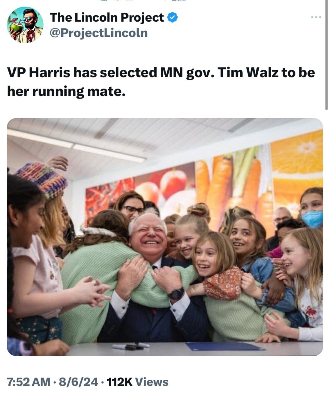 I don’t know what “stat” stands for, but it is time for a new T-shirt. Walz is our guy! We can win this! That’s my post. The less said the better.
