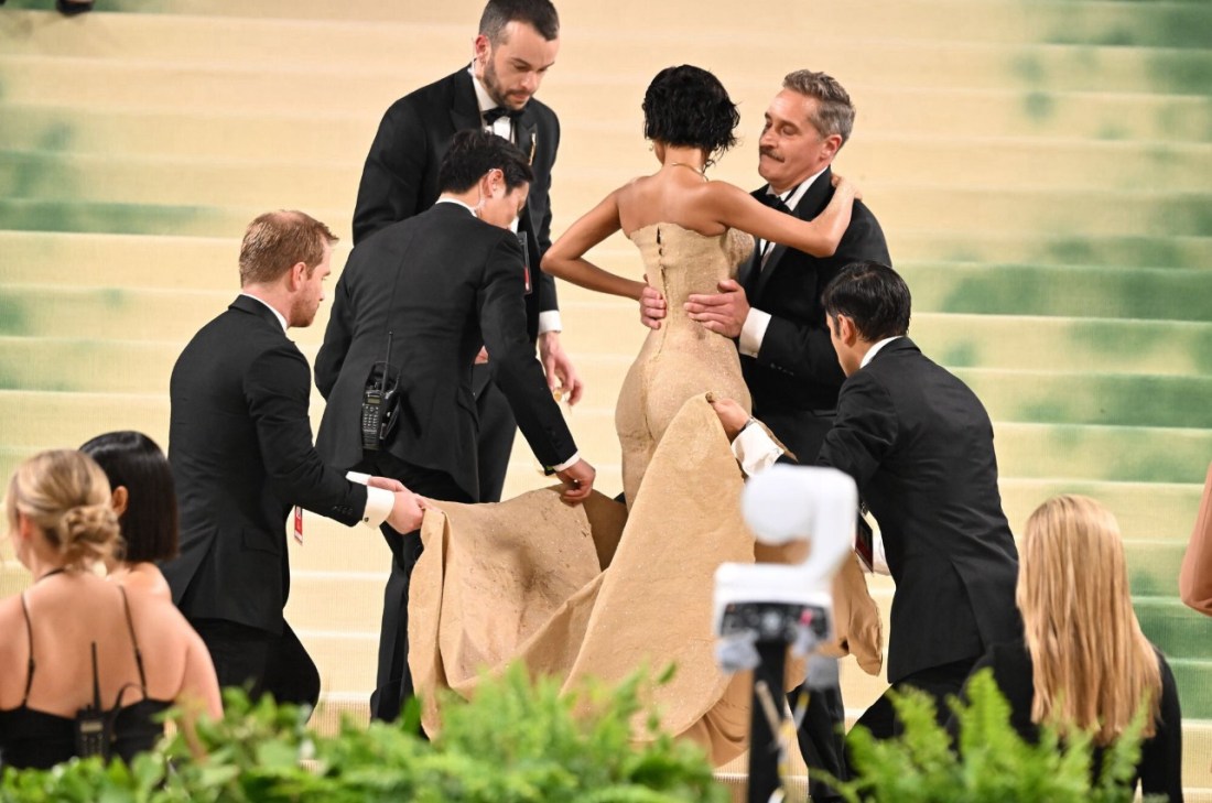 Sisyphus faced a mountain and laboriously pushed a boulder to the top. https://twitter.com/variety/status/1787610638522470862?s=46&t=o0VBjp_pTPGAQM1X_HCy1Q A mandem of five were affronted by a staircase. Their burden, Tyla, wore an impractical dress that left her in need of a lift to the top. Rather than a rock, Tyla accessorized with an hourglass handbag, purely decorative. Sisyphus did not … Continue reading The Meh Gala, 2024